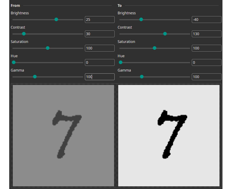 - Increase the amount of training data: If your model needs to fit to more data, it becomes harder for it to focus on individual details, so the amount of overfitting decreases. You can increase the amount of training data by recording and labeling additional images, but, since this is expensive, it is probably easier to use data augmentation. When we apply data augmentation to our images, we alter them in a way that produces realistic examples and preserves the annotations. For example, we can rotate or shift the images to gain a new image and increase the variance of our dataset. Because we can transform the annotations in the same way, we don't need to annotate the new images. You can find more information about the augmentations that are available in the OneAI extension here.