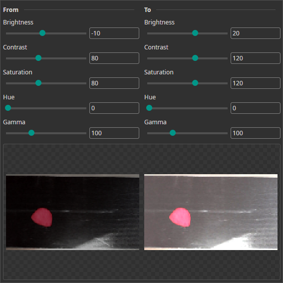 This augmentation varies the image's brightness, contrast, saturation, hue and gamma values. It can be used to mimic varying lighting conditions.