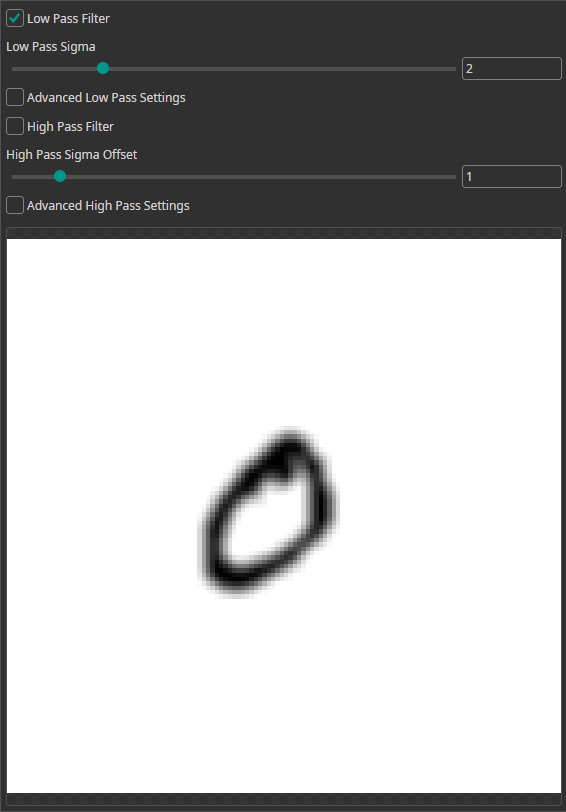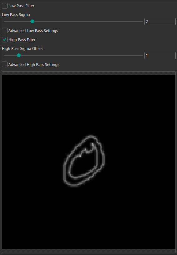 On the right, you can see the settings for the selected prefilter as well as a preview on how it will affect the image. The image on the bottom left shows a preview of your complete prefilter pipeline.